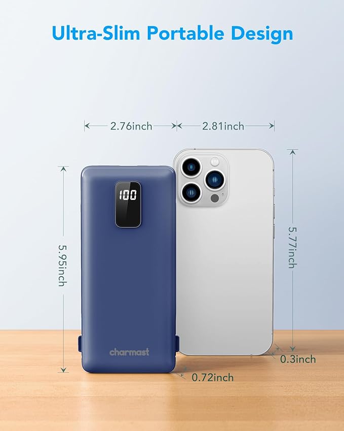 - Say goodbye to tangled wires and multiple chargers with the Charmast Portable Charger. Its built-in cables make it compatible with iPhone 16/16 Plus/16 Pro/16 Pro Max, iPhone 15/14/13 Series, Samsung Galaxy, all cellphones, so you can travel light without worrying about charging issue.
