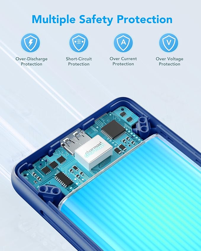- Despite its features, this slim portable charger is designed to be fast charging, measuring just 5.95" x 2.76" x 0.72" and weighing only 0.5 lbs, less than the weight of a cup of water. Its USB A or USB C output supports up to 5V-3A fast charging, making it a versatile and ultra-slim USB C power bank that you can carry around or put in your purse.