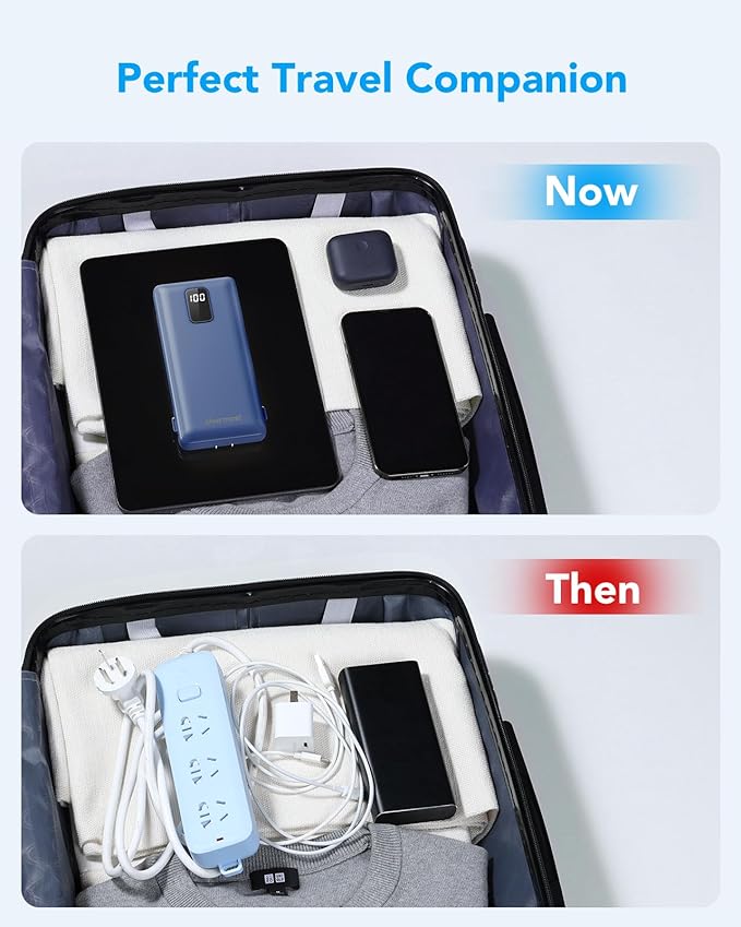 - The built-in wall plug enables direct recharging of this battery pack from any wall socket, with built-in cables for added convenience. This makes it a handy portable phone charger for your family and friends, suitable for camping, hiking, and traveling.