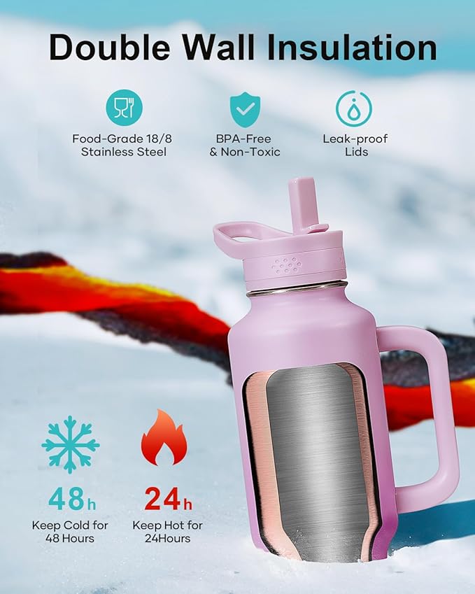 - A Perfect Hold: An ergonomic handle that fits your hand like a custom fit, delivering a luxurious, comfortable grip. Ideal for easy sipping during driving, camping, hiking, cycling, or vacations—effortless hydration, anytime, anywhere