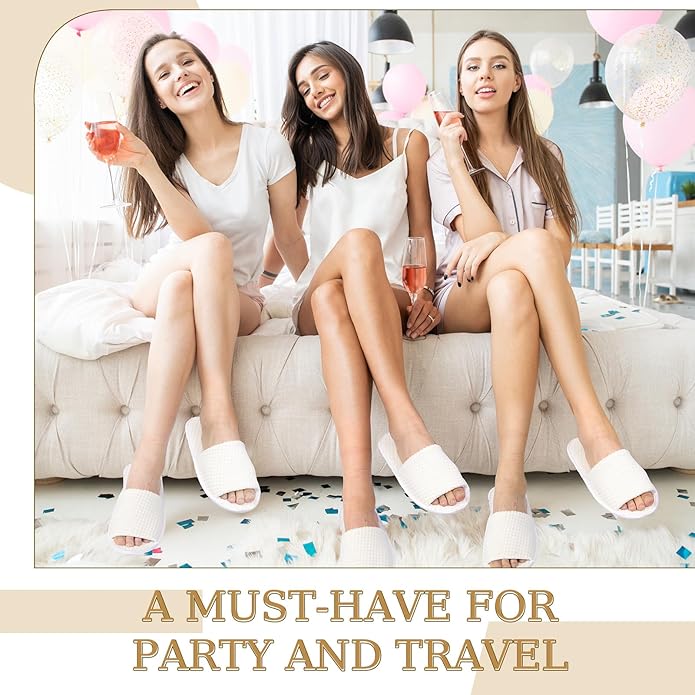 • Bulk Pack for Convenience: the package includes 12 pairs disposable hotel slippers for women, ensuring you have enough slippers for your family as well as for guests; It's ideal for those spontaneous family gatherings, birthday parties, or special occasions