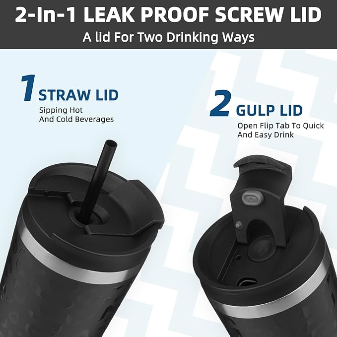 - BPA-Free Threaded Lids: The 2 In 1 Screw-on Lid, Not Only Can You Open The Lid And Drink Directly From The Flip Lid, But Also Can Insert A Straw In The Middle, Choose Your Own Way For Drinking
