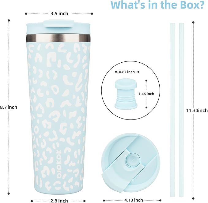BJPKPK 26oz Tumbler With lid And Straw Stainless Steel Travel Coffee Mug Insulated Tumblers Cups,Light Blue Leopard