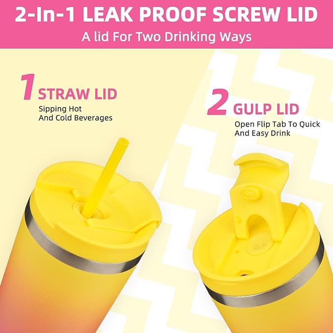 - BPA-Free Threaded Lids: The 2 In 1 Screw-on Lid, Not Only Can You Open The Lid And Drink Directly From The Flip Lid, But Also Can Insert A Straw In The Middle, Choose Your Own Way For Drinking