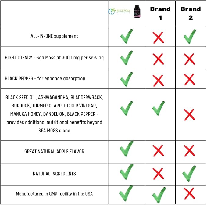 - ✅ Advanced 10-in-1 Formula – Each serving delivers 3000mg of Irish Sea Moss, combined with Black Seed Oil, Ashwagandha, Bladderwrack, Burdock Root, Turmeric, Apple Cider Vinegar, Manuka Honey, and Dandelion for ultimate wellness and vitality.