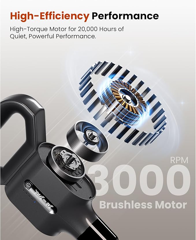 - Powerful & Durable Brushless Motor: Delivers up to 3000rpm speed, 12mm amplitude, and 30W power to instantly activate deep muscle resonance. Strong, consistent power output easily breaks down muscle stiffness and fatigue adhesions. The brushless design eliminates carbon brush wear, ensuring long-lasting stable performance for pro-grade relaxation. 5 adjustable speed settings suit everything from gentle daily relief to deep muscle decompression.