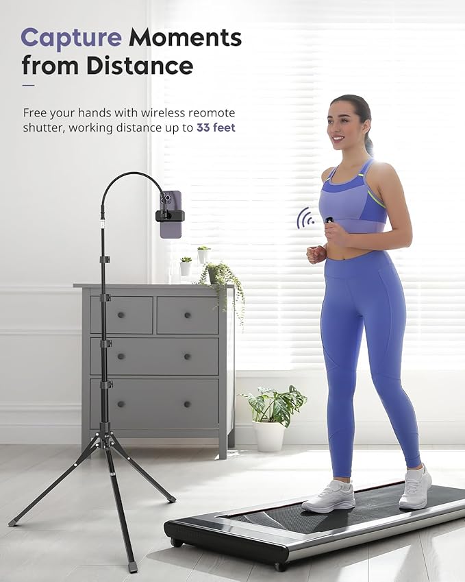 - Extra-Long Reach for Perfect Angles: Our tripod stand features a gooseneck that extends from 16 inches to 92 inches, offering impressive height and flexibility for capturing photos and videos from any angle. Ideal for live broadcasts, family gatherings, professional photography, and more.