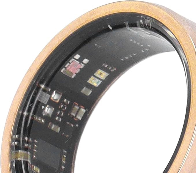 ASHATA Bluetooth Smart Ring Fitness, Health Ring to Monitor Fitness Pedometer Sleep Data, APP Control, Smart Ring for Men Women, Gold (8)