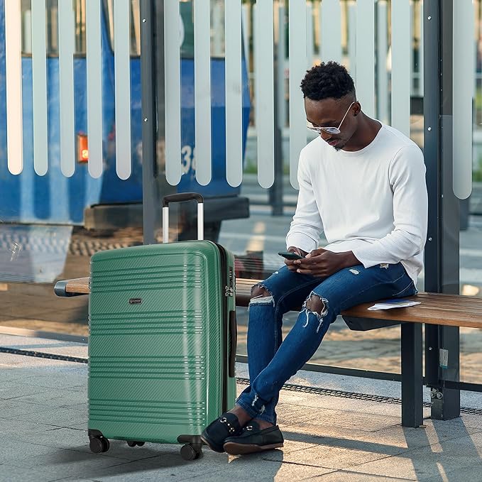 20 Inch Carry on Luggage 22x14x9 Airline Approved Hardside Suitcase with Spinner Wheels TSA Lock, 20-Inch, Green