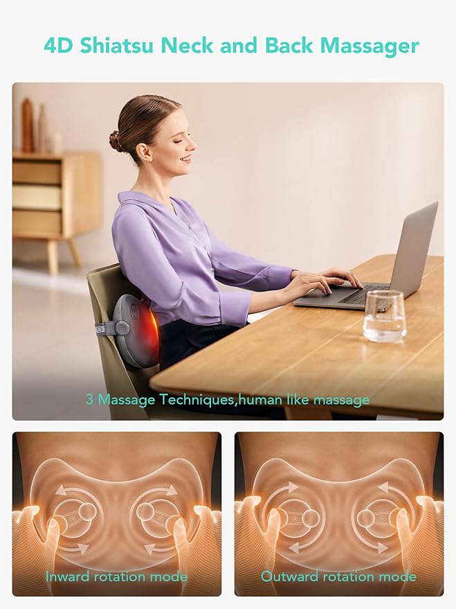 - 4D Kneading Technology: Mimics professional hand-like massage techniques, including kneading, tapping, and pushing, to target upper and lower back pain effectively.