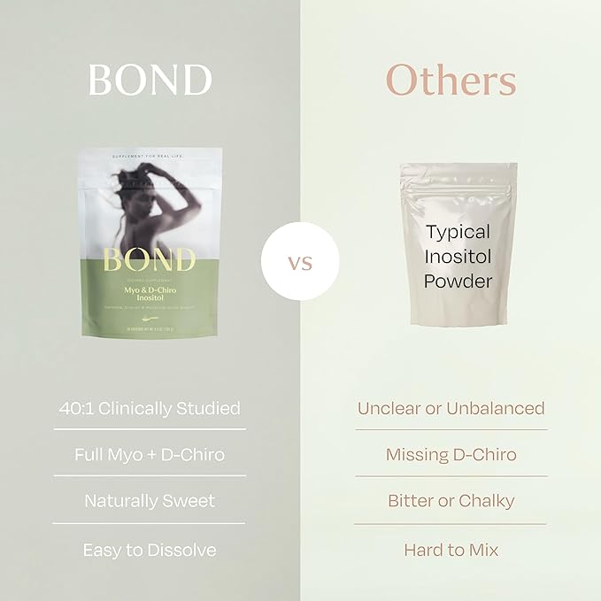 BOND Myo-Inositol & D-Chiro Inositol Powder – 40:1 Ratio – Hormone Balance for Women, Cycle & Ovulation Support – 90 Servings, Vegan, Sugar-Free