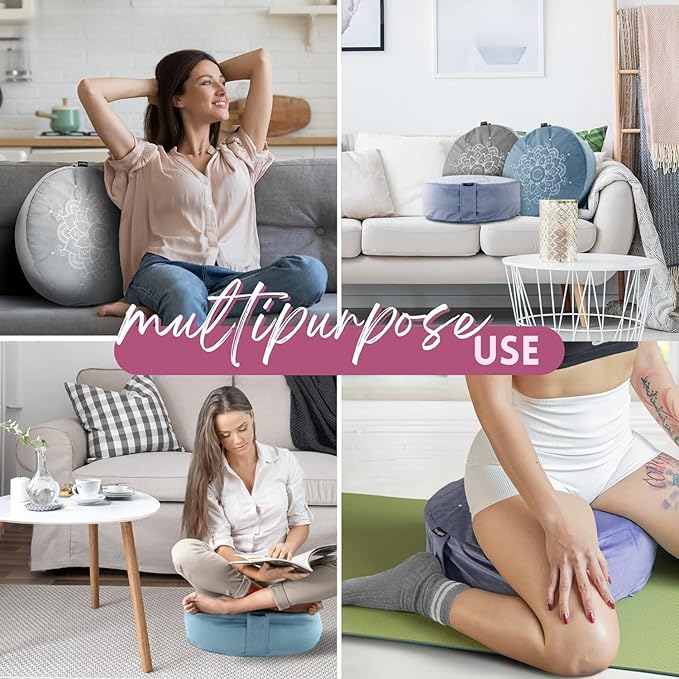 - EASY TO CLEAN & WASH: Yoga seat or bolster pillow to sit on includes a velvet cover for effortless hygiene; With a convenient zipper design, floor cushions for sitting make cover removal effortless & machine washable in delicate mode