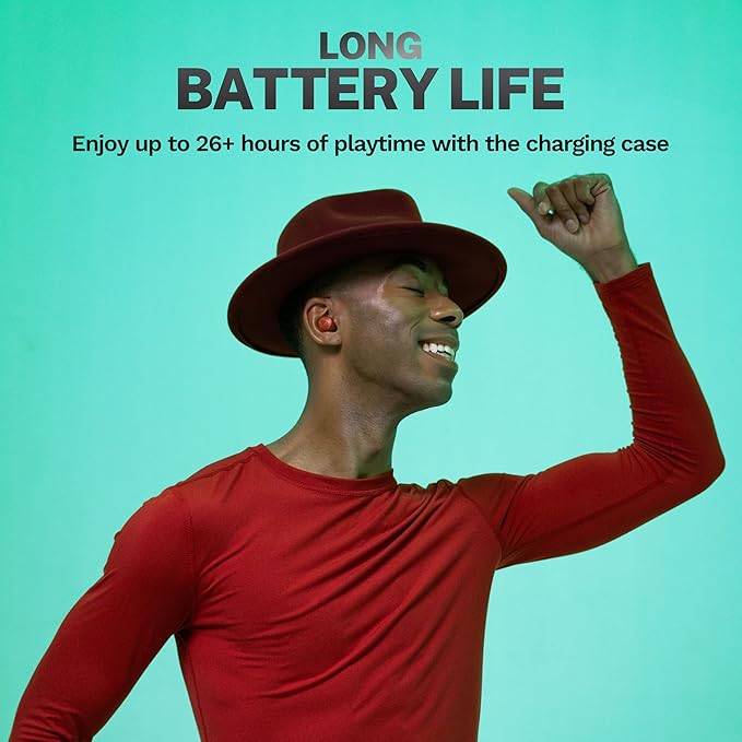 - đBATTERY LIFE: Listen for the long battery life with your wireless earphones; stay for the comfort. Go Pop+ features 9+ hours of playtime in each earbud and 26+ extra hours from the charging case. Thatâs 35+ hours of playtime with your bluetooth earphones