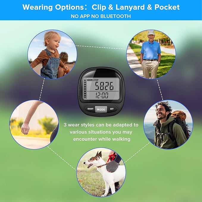 - 【Simple To Use】The Large Dispaly 3D pedometer, No Bluetooth, app and charge required, The digital display is clear and easy to see from a distance or while moving. The new product has more features than the traditional pedometer, but it will not be displayed on the screen at the same time, so it will not affect the your experience of the screen. If you just want the simplest pedometer, it is the same as the simplest pedometer operation on the market today