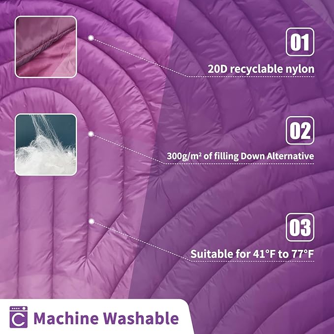 - MULTIFUNCTIONAL BLANKET: This blanket has multiple pairs of buttons and can be used as a comforter, rug, shawl, or sleeping bag. You can also put two blankets together to make a double sleeping bag.Perfect for camping, backpacking, hiking, climbing, travel, relaxation, picnics, beach trips, sports activities, airplane trips, and other outdoor activities.