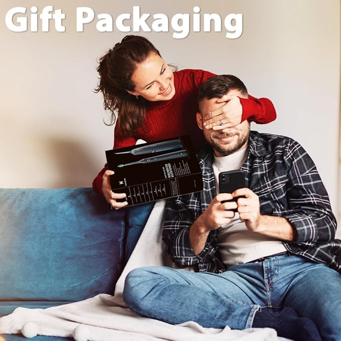 - 【Powerful Sonic Toothbrush】Ultrasonic motor generates 38,000 micro-vibrations per minute. More whitening effect and deeper reach. Electric toothbrush cleans the surface of your teeth deeper to prevent stains and reduce plaque. Intelligent automatic timer with 30-second intervals ensures that the dentist-recommended 2-minute brushing time is met.4 brushing modes make the most of each brushing session to suit different teeth and gum conditions.