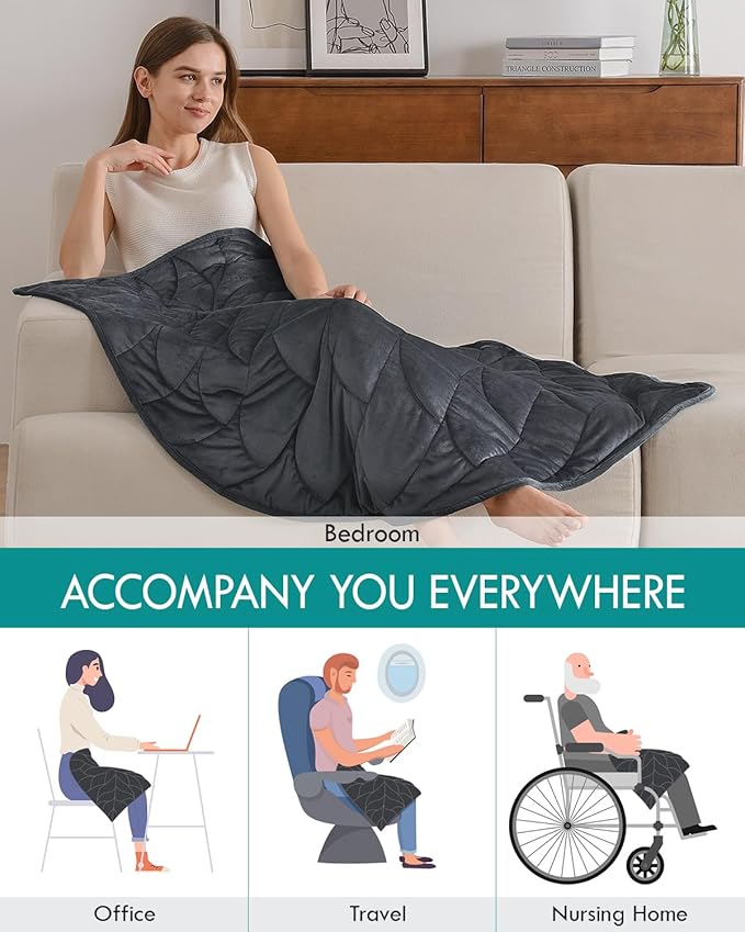 - Skin-Friendly Velvety Microfiber: The leaf-shaped weighted lap blanket is lovingly crafted from ultra-soft velvet-like fibers. It provides you with an unparalleled skin-friendly experience that will elevate your sleep quality while blending seamlessly with any decor