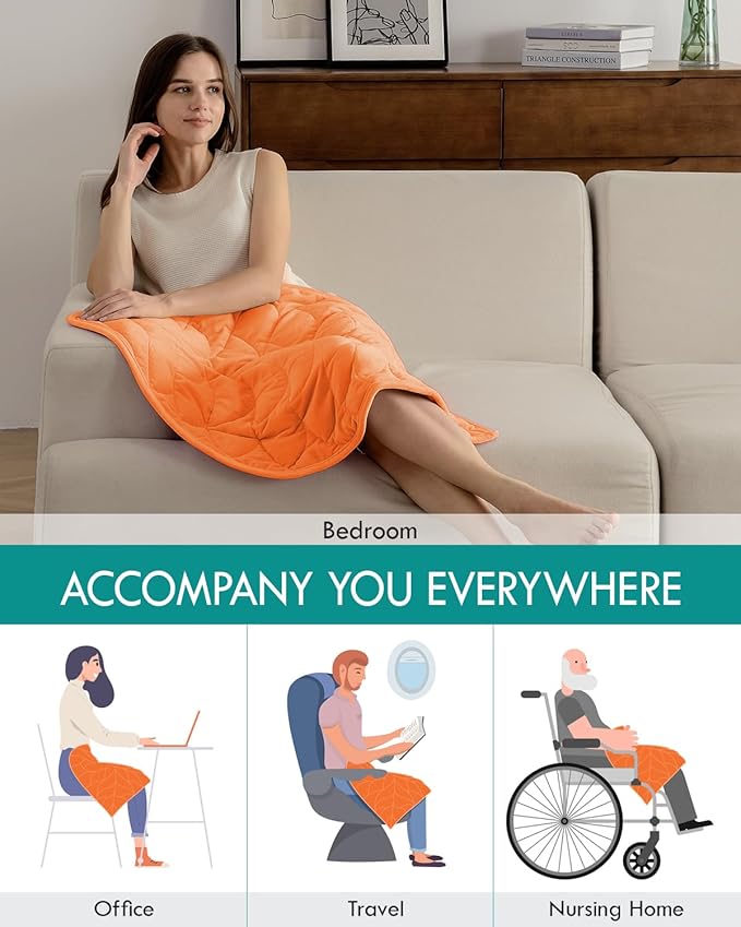 Kaisa Weighted Lap Blanket 5 lbs 23" x 29", Cozy Luxury Crystal Velvet Small Weighted Blanket for Adults, Portable Travel Weighted Blanket for Relaxation, All-Season Blanket, Machine Washable, Orange