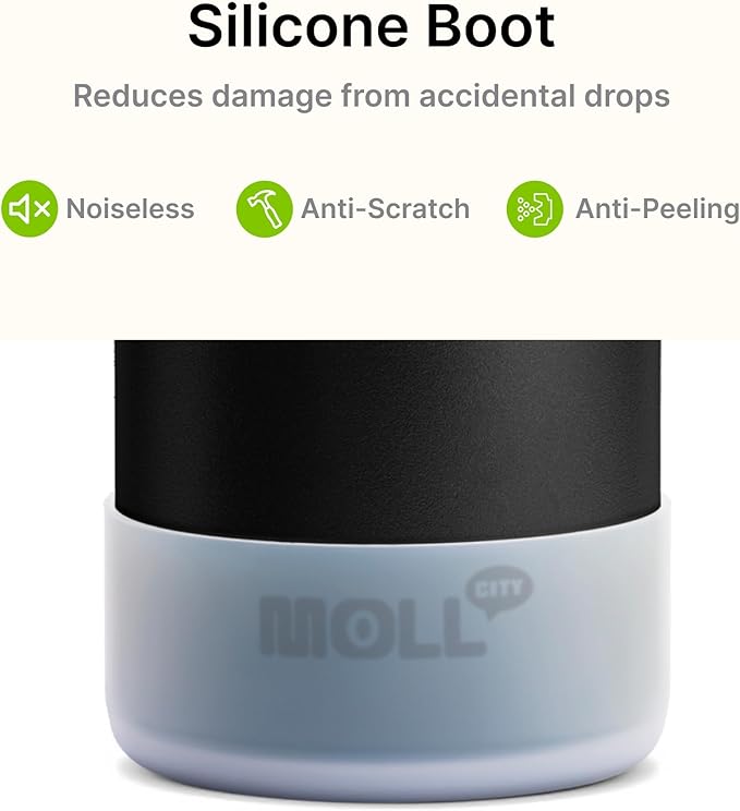 - BOTTOM PROTECTION: Don't worry about damage to your water bottle from accidental drops or falls, our silicone sleeve prevents scratches and dents on the bottom to prolong the life of your water bottle. It prevents the water bottle from clinking when it is placed, so there is no drinking disturbance during quiet office and study time.