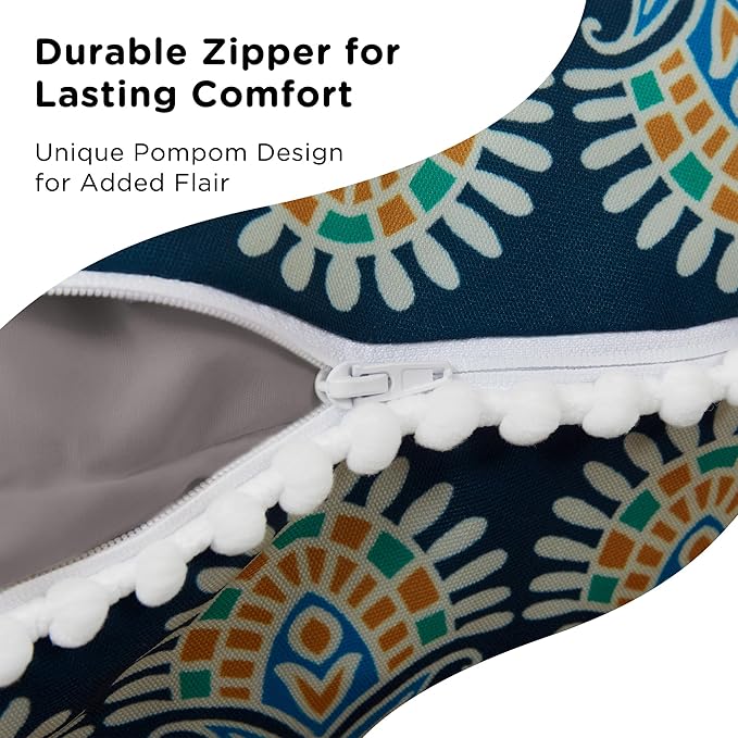 - BRIGHT UP YOUR HOME: Pick from our distinct color palette to brighten up your home decor. The round boho case is a gorgeous piece of mandala art, made with sensitive-safe fabric featuring cute white pom pom trim. Kids, Adults, even pets will love it. Machine washable cover to free your hands.