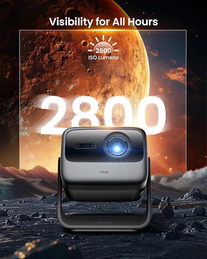 JMGO N1S Ultra 4K Triple Laser Projector with WiFi and Bluetooth, 2800 ISO Lumens, Google TV, 360° Sensorless Picture Correction, 300", HDR10, 20W Dolby Digital Plus, 3D-Active, Smart and Portable