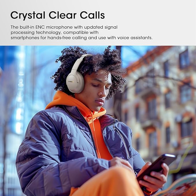- Bluetooth 5.3 & Built-in ENC Microphone: Over the ear headphones wireless bluetooth carrying latest Bluetooth 5.3 chip, ensures an ultra fast and stable connection up to 66 feet (20 meters) and provide lower latency and better audio output. With the latest signal processing technology, built-in ENC microphone, supports ENC noise cancelling for calls, and is compatible with smartphones so you can talk clearly even on noisy streets