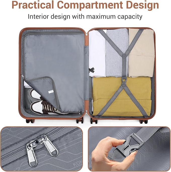 - 【PRATICAL INTERIOR FOR WELL ORGANISED】Kono hard shell carry on luggage designed with 2 roomy fully-lined compartments. The packing straps keep your clothes in place, a zipper mesh pocket for anything you want to keep separate. Not only a perfect small luggage for yourself, but also a cute gift for your families, friends, or school children.