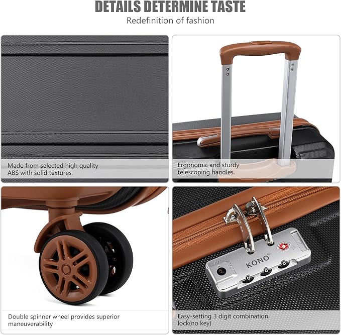 - 【DURABLE + 2-YEAR LIMITED WARRANTY】Made from a protective, lightweight hardside ABS shell, this luggage is scratch-resistant, pressure-resistant, dirt-proof, and waterproof. Each Kono luggage undergoes extremely strict quality control test standards to ensure that our products can endure the harsh conditions of modern transportation. Moreover, Kono offers a reliable 2-year limited warranty service!