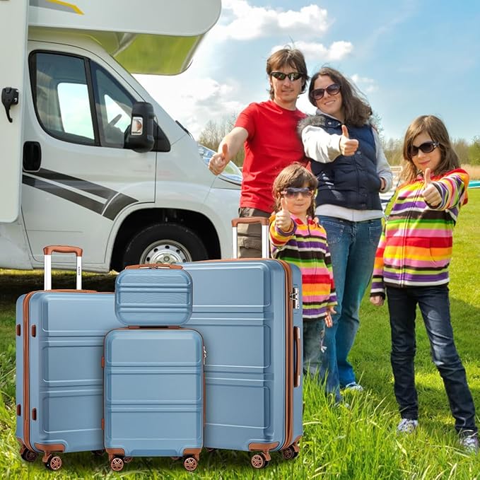Kono 20'' Carry on Luggage Lightweight with Spinner Wheel TSA Lock Hardside Luggage Durable Small Carry on Suitcase Apricot Blue