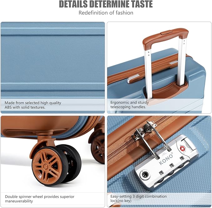 - 【DURABLE + 2-YEAR LIMITED WARRANTY】Made from a protective, lightweight hardside ABS shell, this luggage is scratch-resistant, pressure-resistant, dirt-proof, and waterproof. Each Kono luggage undergoes extremely strict quality control test standards to ensure that our products can endure the harsh conditions of modern transportation. Moreover, Kono offers a reliable 2-year limited warranty service!
