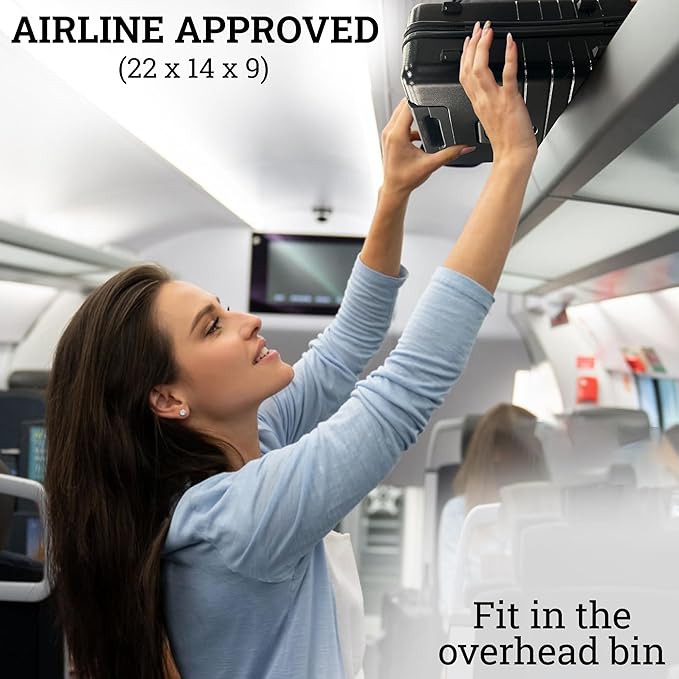 - đ§łMOVE EASILYđ§ł Featuring multi-directional double spinner Silent Wheels technology for smooth and quiet gliding, this Carry On Luggage Size-22x14x9 airline approved& 36.1L capacity Airline Approved with 4pcs 360-degree spinner wheels made of precision spindles & thickened double wheels, quiet, wear-resistant, impact-resistant, durable and smooth to drag or roll on multiple floors and has a weight around 3.5kg