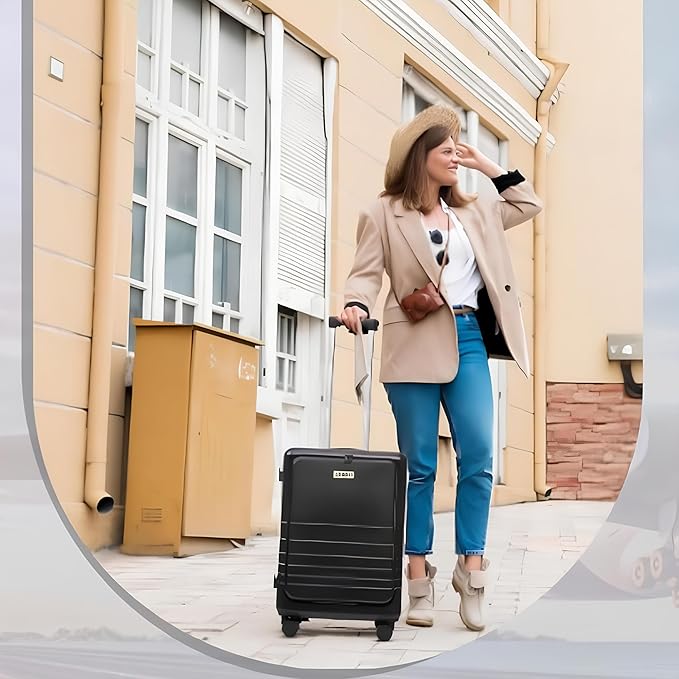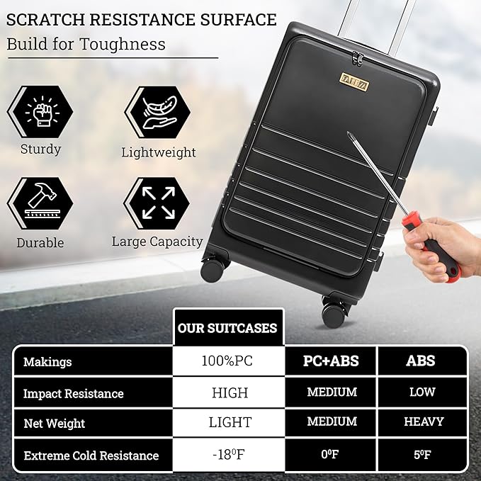 - đ§łRELIABLE HIGH-QUALITY PC SHELLđ§ł This Front Pocket Carry On Luggage is made from a 3-layer PC trolley composite material, offering excellent strength and durability while maintaining elasticity and resilience. The textured design helps reduce the visibility of marks that may occur during the checking process.