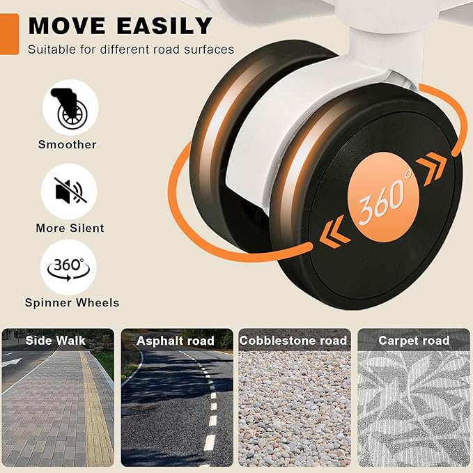 - Dual Spinner Wheels: The zipperless luggage is equipped with 4 dual silent spinner wheels, smooth and easy gliding. In addition, the 360° spinner wheels can be easily rotated in any direction, forward or backward, to ease your burden of movement.