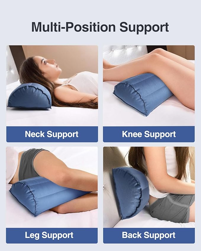 Luxtude Inflatable Bolster Pillow for Legs, Half Moon Pillow Under Knee Pillow for Back Sleeping, Leg Pillows for Side Sleeping, Leg Elevation Pillows for Knee Support, Lumbar, Ankle or Foot