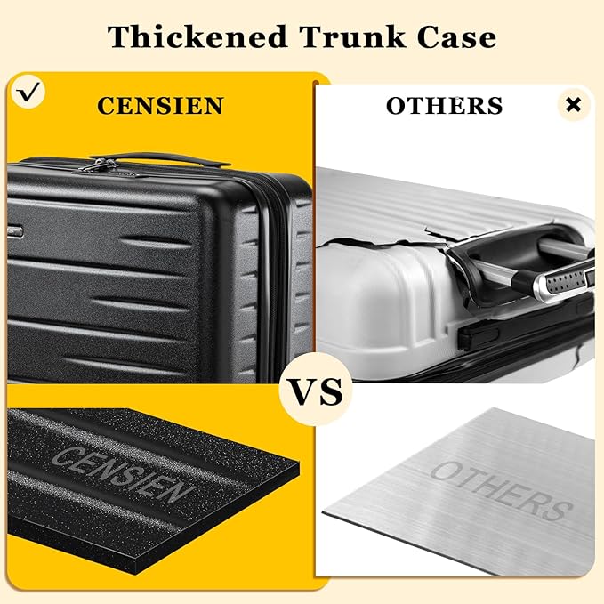 - For Short Trips: Easy to carry with dimensions of 15.95" x 8.86" x 16.93" and a weight of 5.95 lbs; CENSIEN carry on luggage complies with airline-approved regulations for smooth boarding and fits in the overhead bin; it cannot fit under the seat