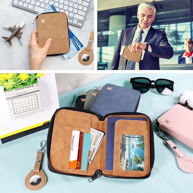 - AIRTAG TRACKING OR DIY:The Airtag Passport Holder Cover Wallet Case comes with a dedicated spot for the Airtag,The perfect combination of airtag and passport ensures you will never lose your passport wallet again.Or you can remove the protective cover of the airtag and decorate it with any pendant you like,such as the keychain, purse,luggage case or backpack.(DOESN'T INCLUDE THE AIRTAG)