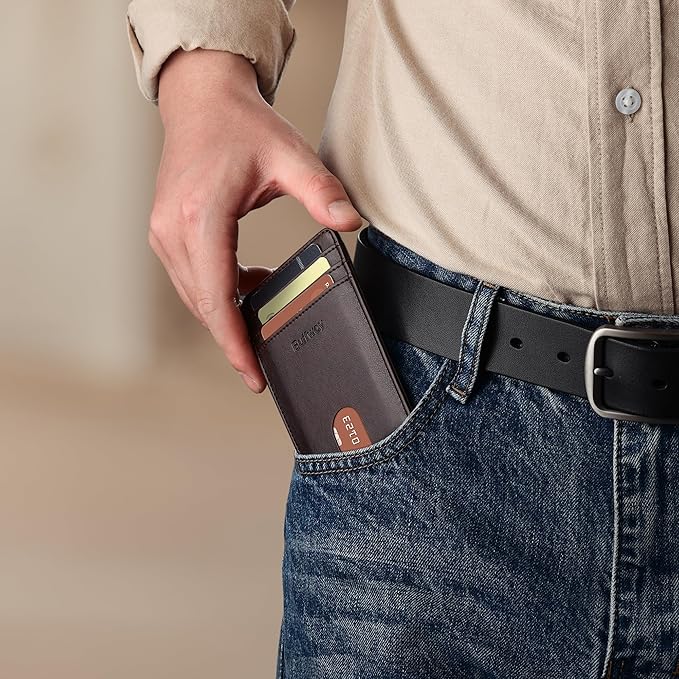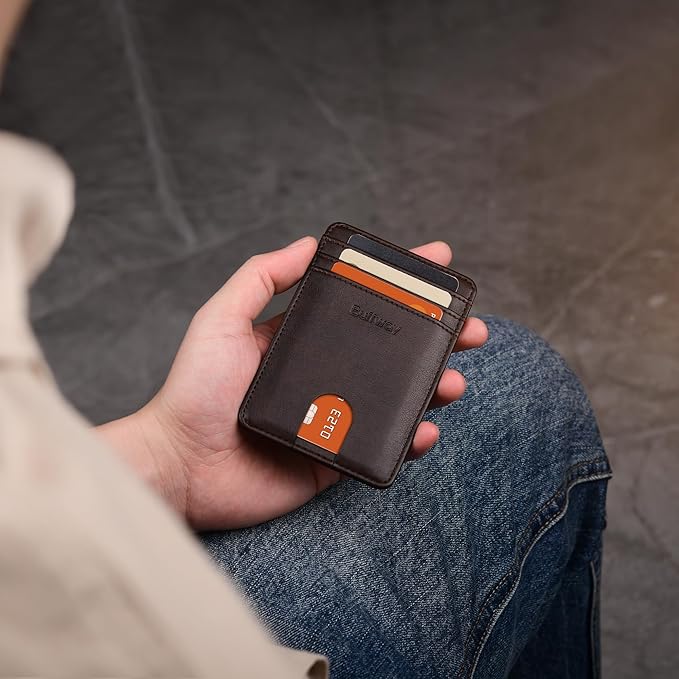 Buffway Mens Slim Wallet, Minimalist Thin Front Pocket Leather Credit Card Holder with RFID Blocking for Work Travel