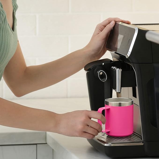 - Comfortable Handle: 12 oz coffee mug is lightweight and easy to carry, the surface is matte powder coating, sweatfree, the coffee mug handle is long and wide, and it fits your fingers to grasp