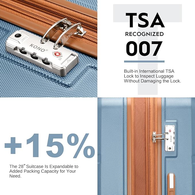 - 【DURABLE + 2 YEAR LIMITED WARRANTY】Crafted from a protective, lightweight hardside ABS shell, this suitcase is scratch-resistant, pressure-resistant, dirt-proof, and waterproof. Each of our Kono durable suitcases undergoes insanely strict quality control test standards to ensure that our products can endure the harsh conditions of modern transportation. Moreover, Kono provides a reliable warranty service.