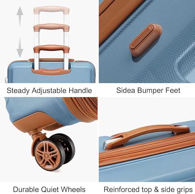 Kono 4 Piece Luggage Sets Expandable(only 28") Lightweight with Spinner Wheels TSA Lock Hardside Travel Rolling Suitcases 20in 24in 28in Carry on and 12in Mini Cosmetic Case Apricot Blue