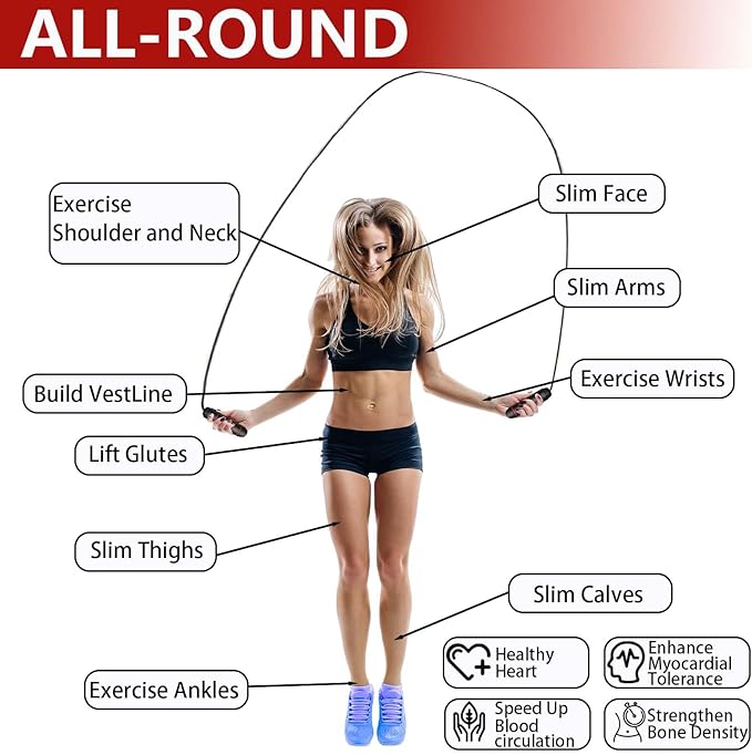 - All Around - Goonidy exercise skipping rope needs the perfect combination of speed and strength when using, quickly integrating high-intensity cardio training into any workout. Increases the heart rate, burns calories, enhances coordination, shape your cardio endurance, stamina, strength and speed, while improving the muscle tension of your whole body, and promote the weight loss effectively. A great choice for boxing, MMA and crossfit training.