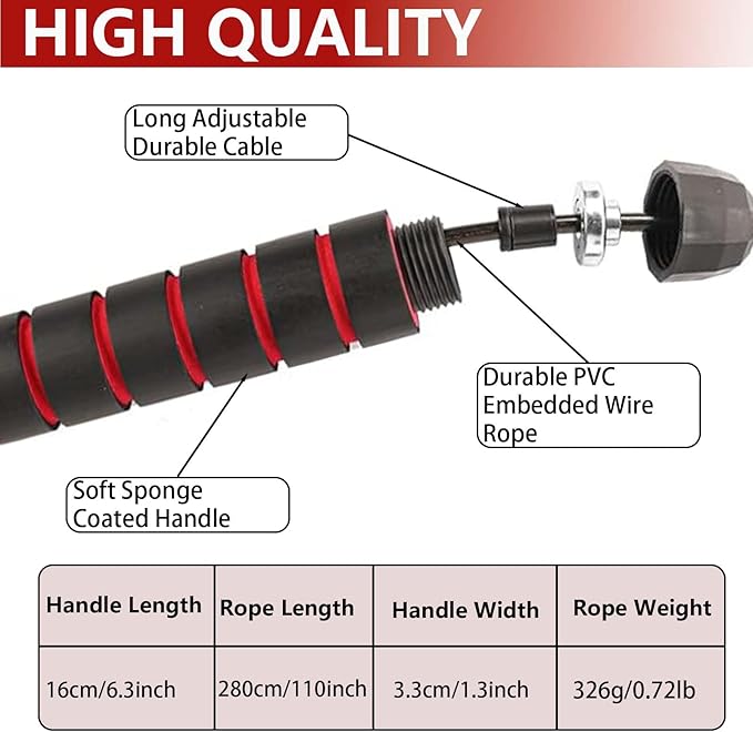 - Special Feature : Adjustable Length, Ergonomic, Heavy-Duty, Tangle Free, Weighted