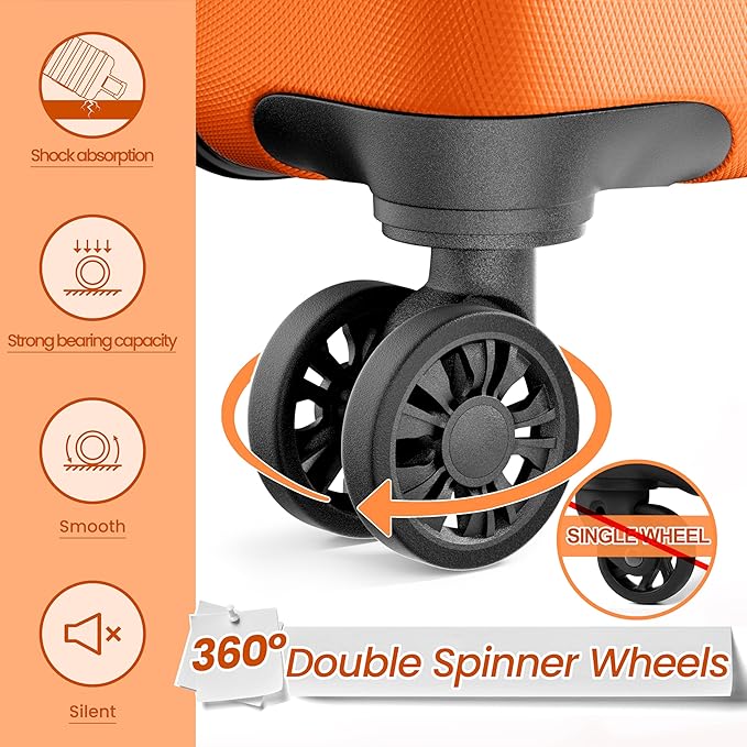 - Dual Spinner Wheel Design: The 4 360° silent dual spinner wheels easily change the direction of move without much effort, moving smoothly through crowded streets, train stations or airports, enhancing your travel experience.