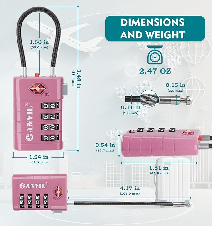 - ★ Easy-to-Set Personal Combination: The ANVIL Luggage Lock is designed for ease of use, featuring an easy-to-read dial for quick and accurate combination setup. As one of the top TSA-approved suitcase locks, it ensures no errors while setting your personal code.