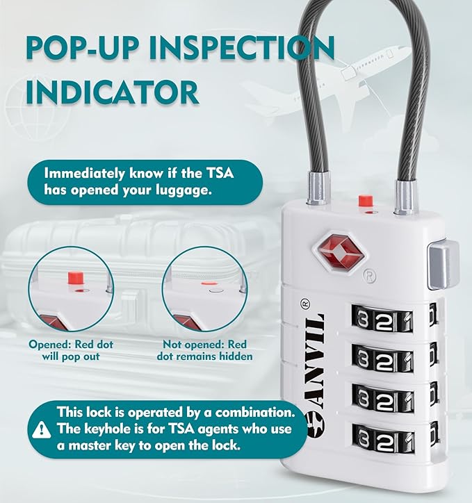 ANVIL 4 Digit Luggage Locks, TSA Locks for Luggage, Advanced TSA008 core, Alert Indicator for Your Travel Lock, Suitcase Lock. (3, White)