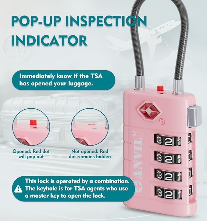 ANVIL 4 Digit Luggage Locks, TSA Locks for Luggage, Advanced TSA008 core, Alert Indicator for Your Travel Lock, Suitcase Lock.(4, Pink)