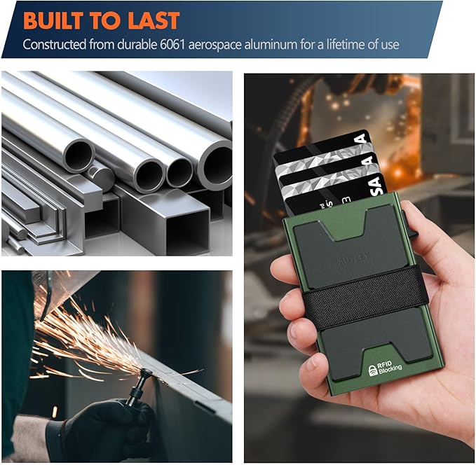 AUTLEY Slim Wallet For Men, Minimalist Mens Wallet Pop Up Wallet, Rfid Blocking Credit Card Holder Wallet with Cash Band (Green)