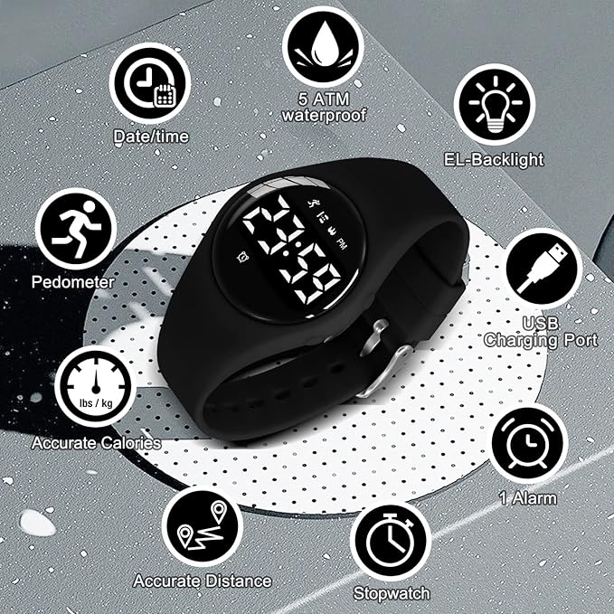• 🎁[Kids Sport Watches] Fitness Tracker — No Need to Connect Phone, you don’t download any APP, just bring a watch to track smartly, step counting, stopwatch, calories, mileage, and recording of every day’s exercise data.
