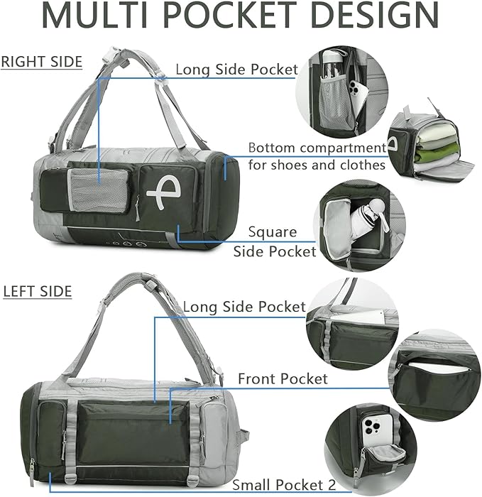 • ⭐【Use as Duffel or Backpack】👍 This 2-way gym backpack is available two back ways for you to adjust freely. BE SMART gym backpack for men is designed with hideaway padded adjustable shoulder straps which can be easily stored away in back panel, transforming this sports backpack to hand bag. It is perfect for use as gym bag, sports bag, travel bag, weekend tote bag, swim bag, hospital bag, airplane bag etc.