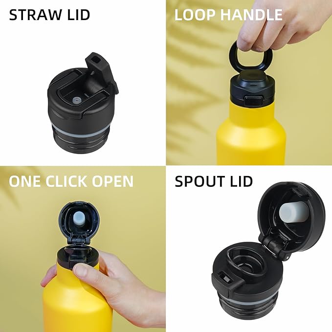 - BPA-Free Leakproof Lids: Comes with 2 different lids options. Straw lids for iced beverages. Spout lids for hot drinks. Both lids flip open with a simple button push, making the ideal hydration companion for the daily water drinking